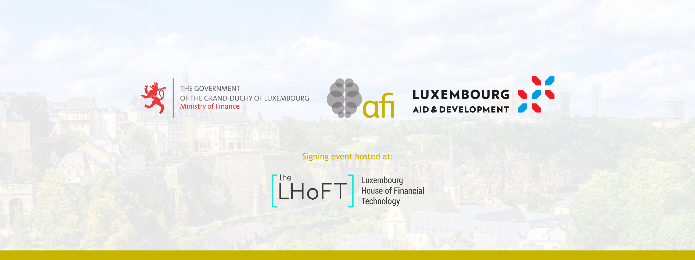The Alliance of Financial Inclusion (AFI) is organizing the signing ceremony to commensurate the launch of the Phase Two (July 2023-June 2026) of its European Representative Office (ERO), which is co-hosted in the City of Luxembourg by Ministry of Foreign and European Affairs and the Ministry of Finance of the Grand Duchy of Luxembourg. The event will be conducted physically at the premises of the Luxembourg House of Financial Technology (LHoFT).