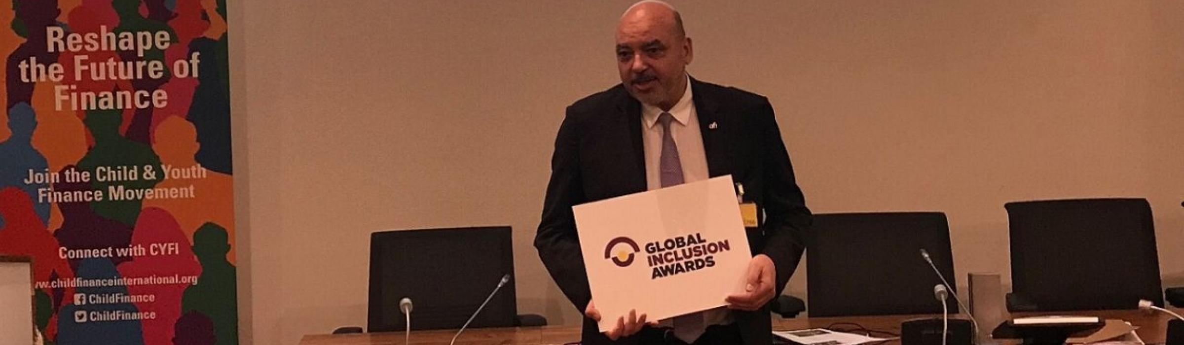 AFI Executive Director Dr. Alfred Hannig officially completed the handover of the Global Inclusion Awards at a Dutch National Bank during a ceremony in Amsterdam on 11 December. The award recognizes those who have furthered the economic citizenship of children and youth at the national, regional and international level by demonstrating innovation in financial, social and livelihoods education, financial inclusion and entrepreneurial support for children and youth.