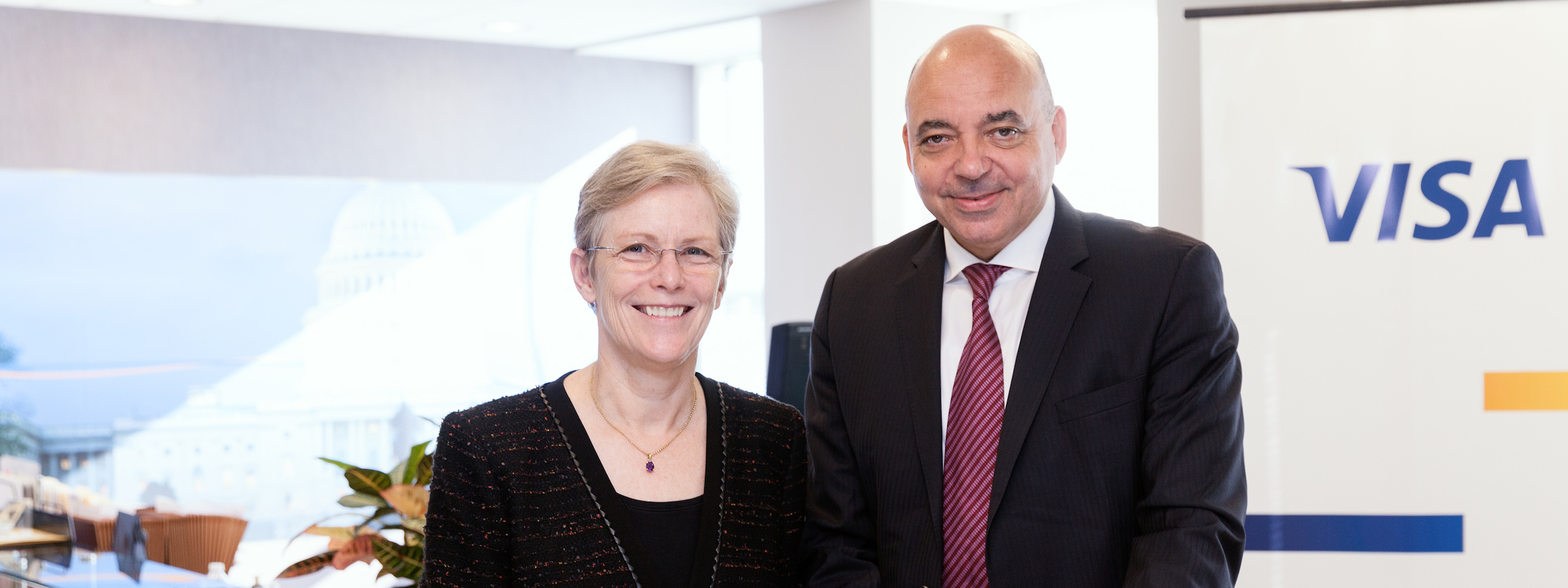 WASHINGTON, DC April 17, 2015: The Alliance for Financial Inclusion (AFI) and Visa Inc., a global leader in the payments industry, have today signed a strategic partnership agreement that will enable close collaboration and knowledge exchange within the framework of AFI’s Public-Private Dialogue Platform (PPD). Taking part in the official signing ceremony was Visa Inc.’s Vice Chairman, Ellen Richey, and the Executive Director for AFI, Alfred Hannig.