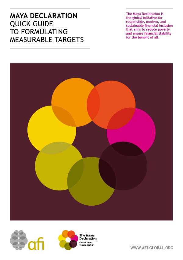 The Maya Declaration is the first global commitment by policymakers from developing and emerging countries to unlock the economic and social potential of the poor through greater financial inclusion. Curious to learn how your institution can submit a commitment to the Maya Declaration for the first time? Download our quick guide to formulating measurable targets in three easy steps.