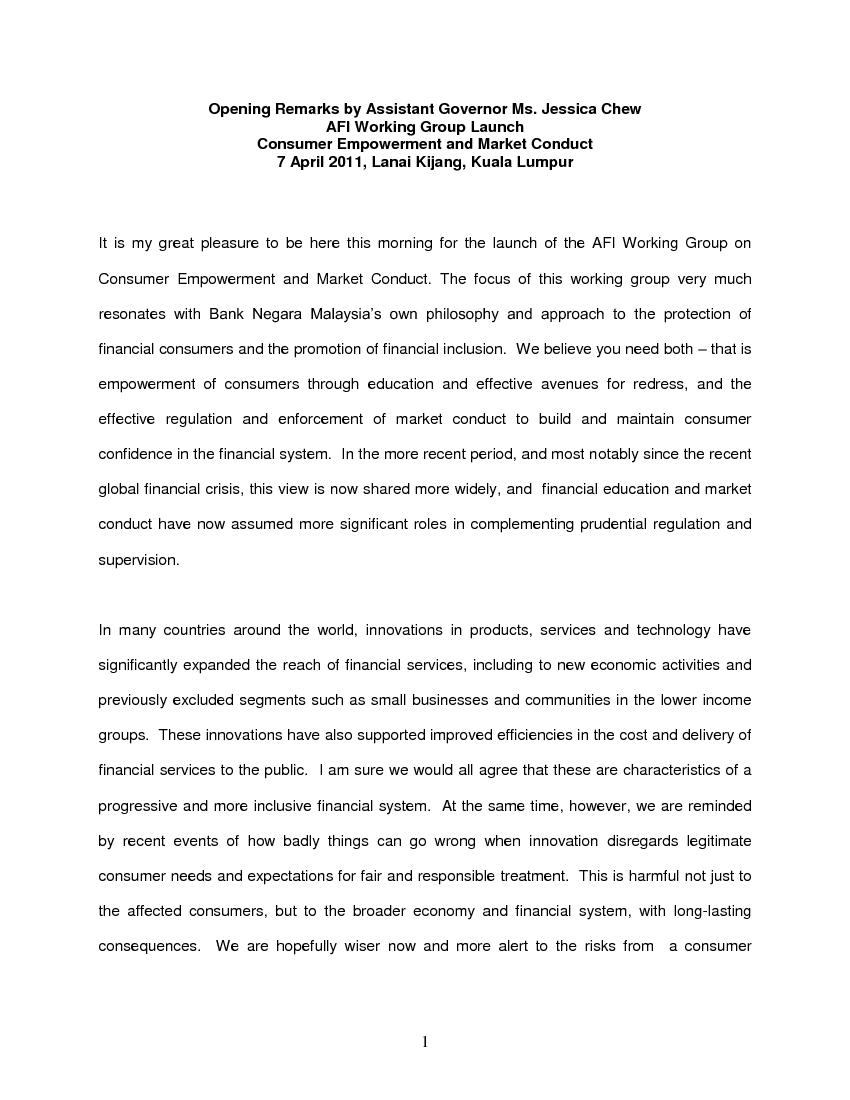 Opening Remarks by Assistant Governor Ms. Jessica Chew