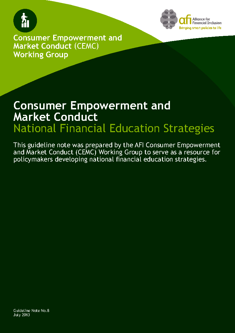 This guideline note was prepared by the AFI Consumer Empowerment and Market Conduct (CEMC) Working Group to serve as a resource for policymakers developing national financial education and literacy strategies.