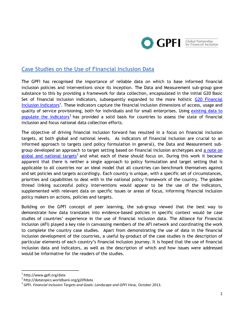 Introductory Note to Case Studies on the Use of Financial Inclusion Data