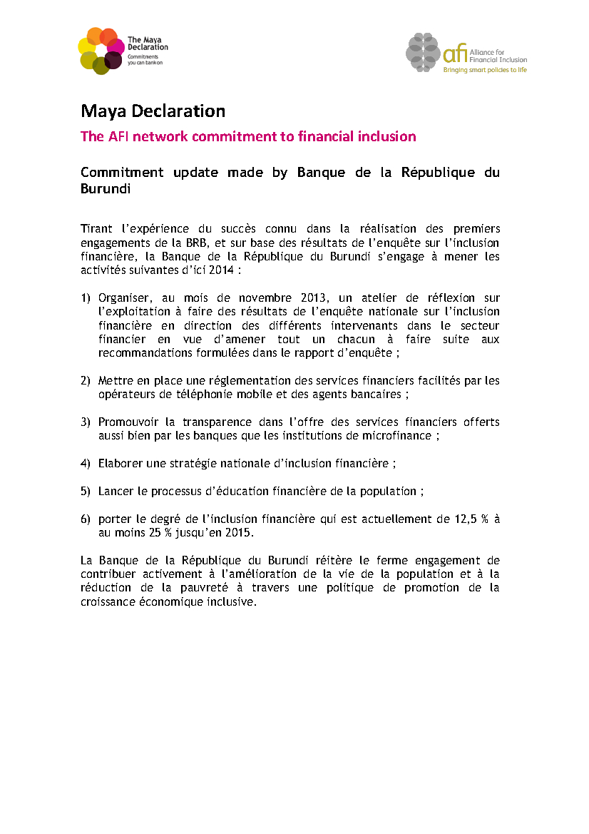 Maya Declaration: 2013 Commitment made by Banque de la République du Burundi