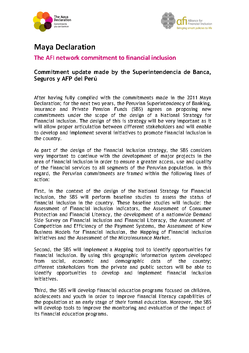 Maya Declaration: 2013 Commitment update made by the Superintendencia de Banca, Seguros y AFP del Perú