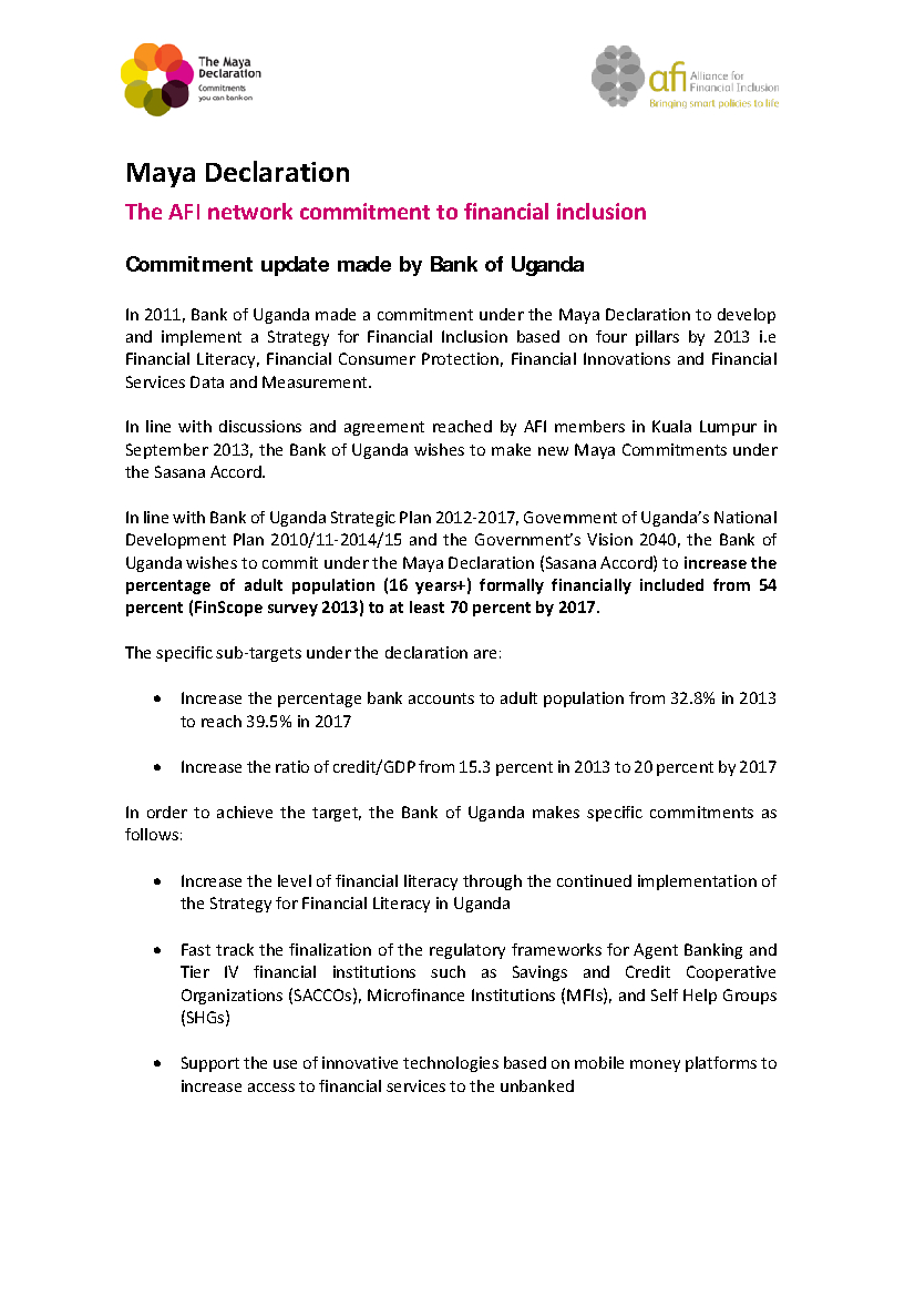 Maya Declaration: 2014 Commitment made by the Bank of Uganda
