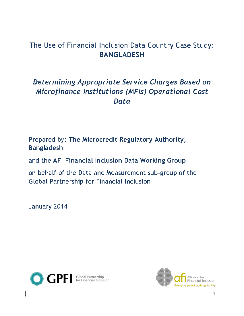 Prepared by: Microcredit Regulatory Authority (MRA) of Bangladesh and the Alliance for Financial Inclusion (AFI) Financial Inclusion Data Working Group (FIDWG) on behalf of the Data and Measurement sub-group of the Global Partnership for Financial Inclusion (GPFI).
