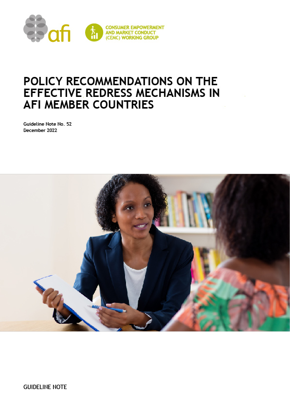 This guideline note provides a wide range of best practices from AFI member institutions in the development, implementation, and monitoring of help and redress mechanisms.
