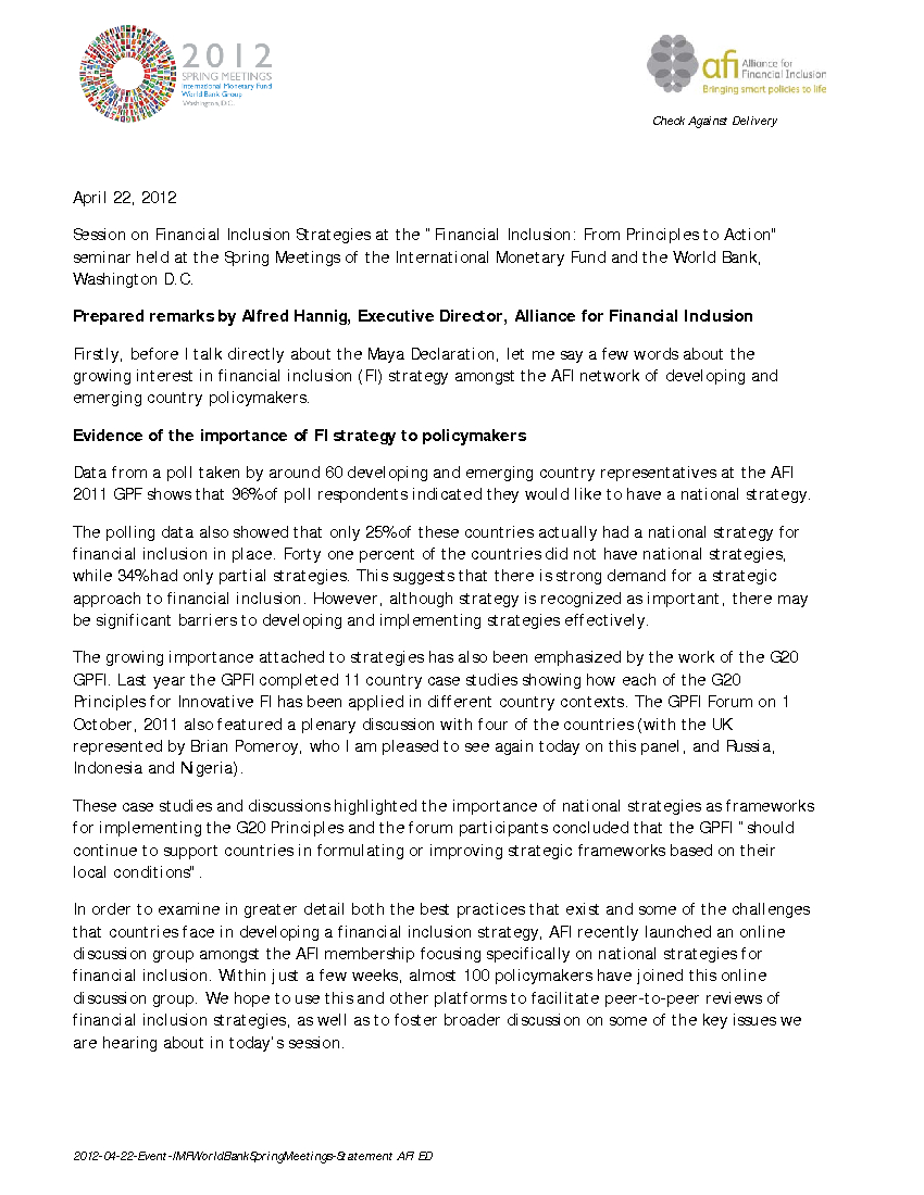 Alfred Hannig Speech at the IMF & the World Bank Spring Forum 2012