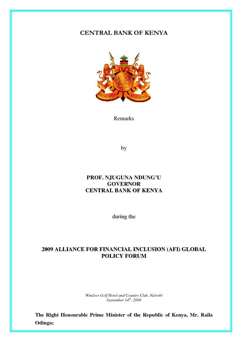 Welcoming remarks by Governor Ndung’u, CBK at the 2009 Global Policy Forum (GPF)