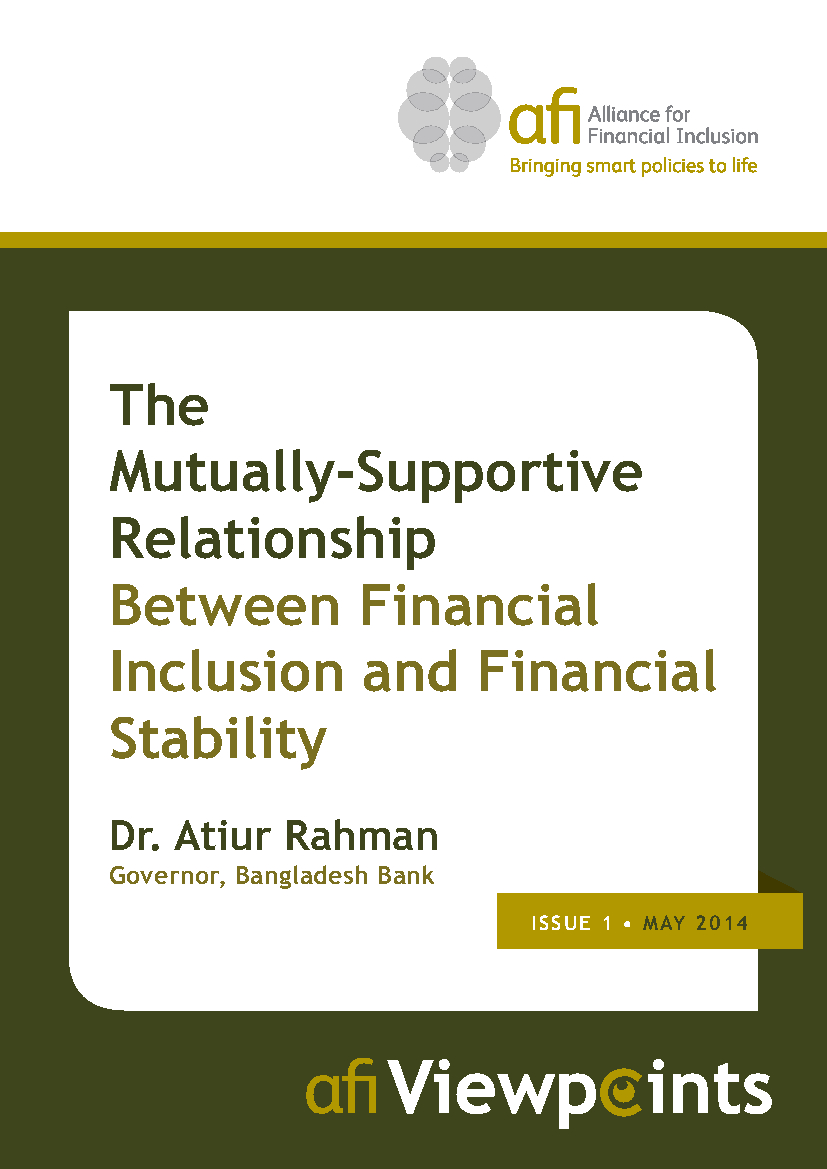 This first AFI Viewpoint by Dr. Atiur Rahman, Governor of Bangladesh Bank, provides a sound argument for a mutually supportive relationship between financial inclusion and financial stability. This topic has gained momentum among policymakers, researchers and development partners in recent years, and was actively discussed in several sessions during AFI’s 2013 Global Policy Forum (GPF), which was organized under the theme “Driving Policies for Optimal Impact.”