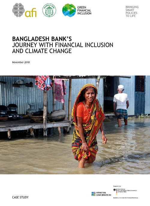The purpose of this case study is to clarify the important link between financial inclusion and climate change and to add to a growing body of evidence of how financial regulators are addressing pressing issues of climate change mitigation and adaptation for those at the bottom of the pyramid. It examines the work of Bangladesh Bank to enact policies aimed at transitioning the financial sector to a green economy and helping the population cope with financial losses from climate change and adapt to new livelihoods and environmental realities.