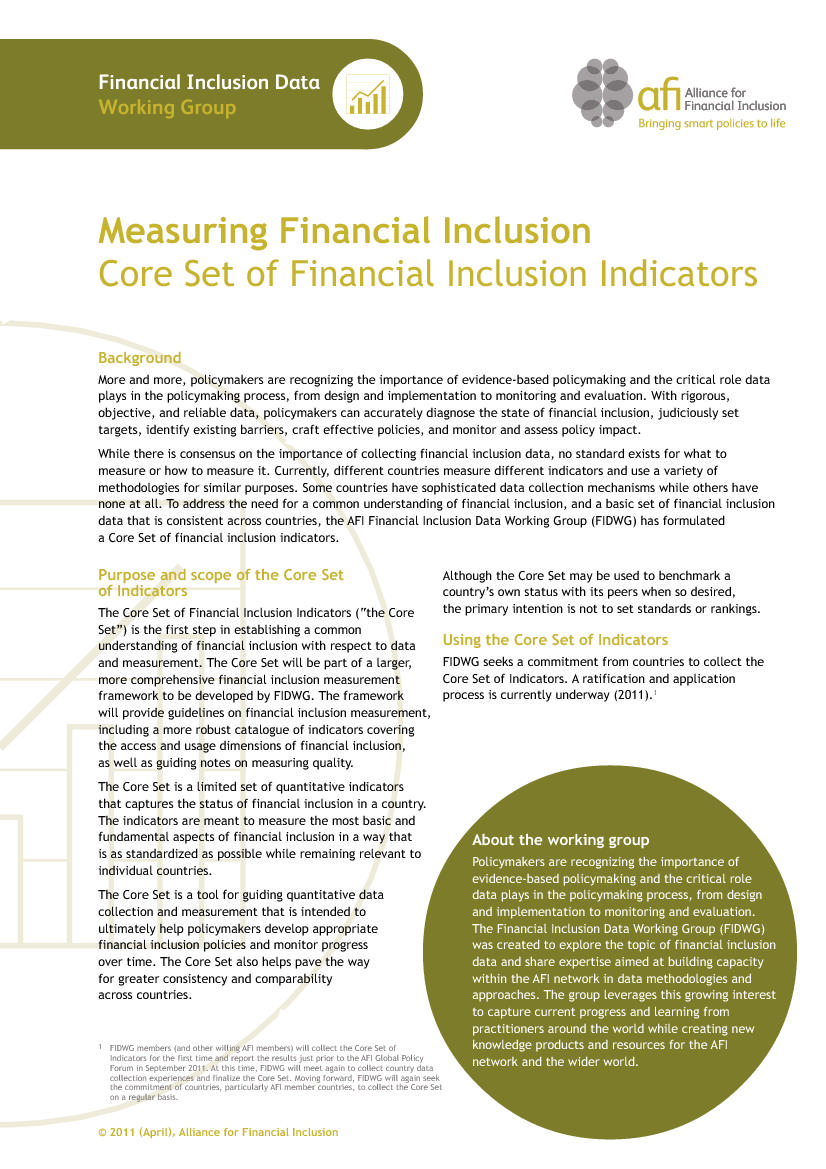 Measuring Financial Inclusion Core Set of Financial Inclusion Indicators