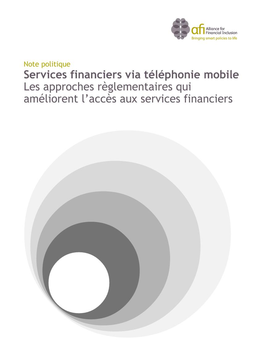 Les services financiers via téléphonie mobile incluent des services financiers variés distribués par l’utilisation d’un téléphone mobile. Deux catégories sont communément différenciées: les services bancaires via téléphonie mobile, grâce auxquels les clients d’une banque se connectent à leurs comptes bancaires par l’intermédiaire de leur téléphone portable; et les services de paiement par téléphonie mobile, qui couvrent un plus grand nombre de services de paiement pouvant ne pas être offerts par une banque, mais nécessitant toujours sa participation.