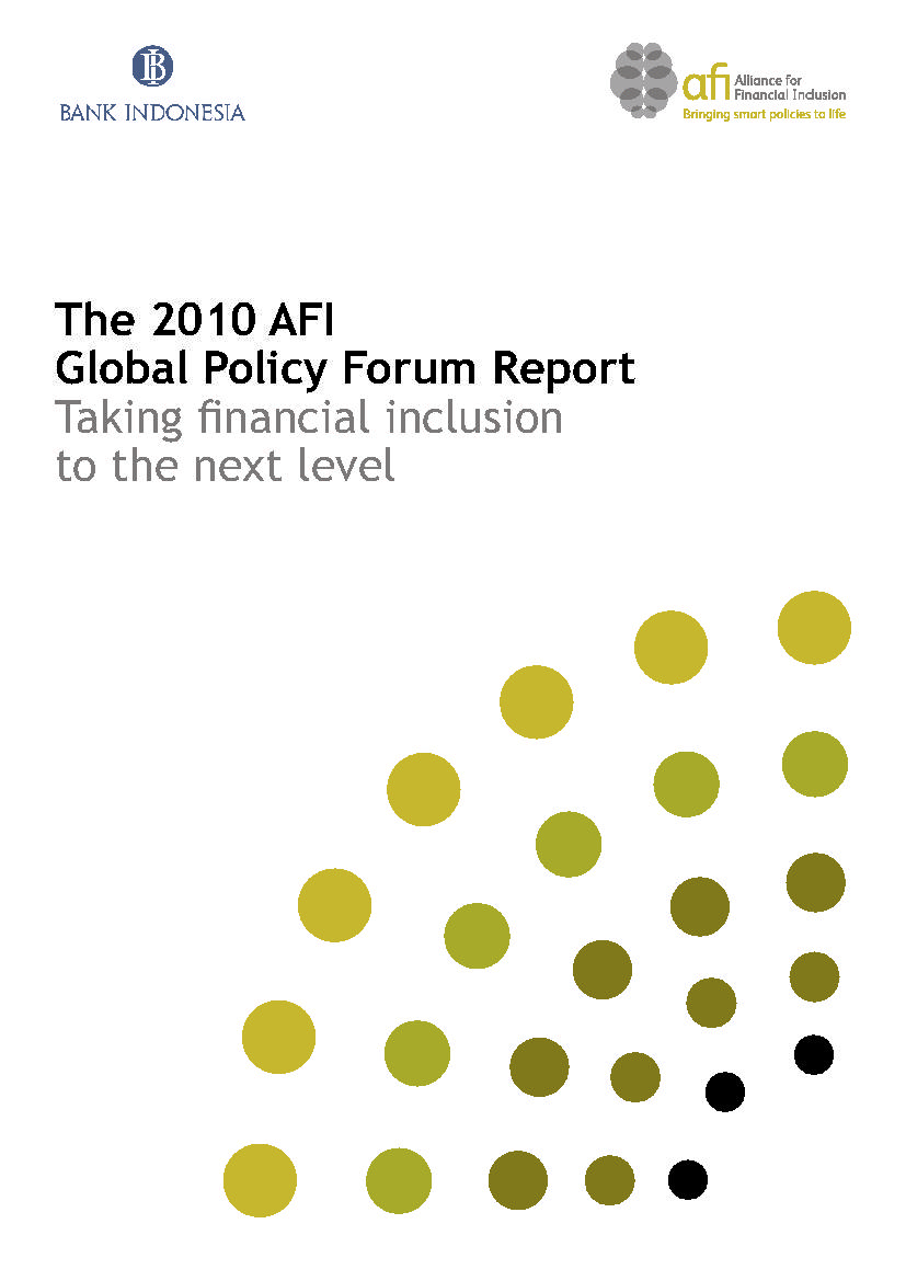 This year’s Forum co-hosted by Bank Indonesia and held in Bali raised the bar a notch, challenging us to find ways to take financial inclusion to the next level. President Yudhoyono’s groundbreaking speech set the tone for a higher level of leadership and commitment by governments. The discussion and creative thinking generated over the course of the three-day meeting will help pave the way for AFI’s activities in 2011. Many of these outcomes are captured in this summary report.